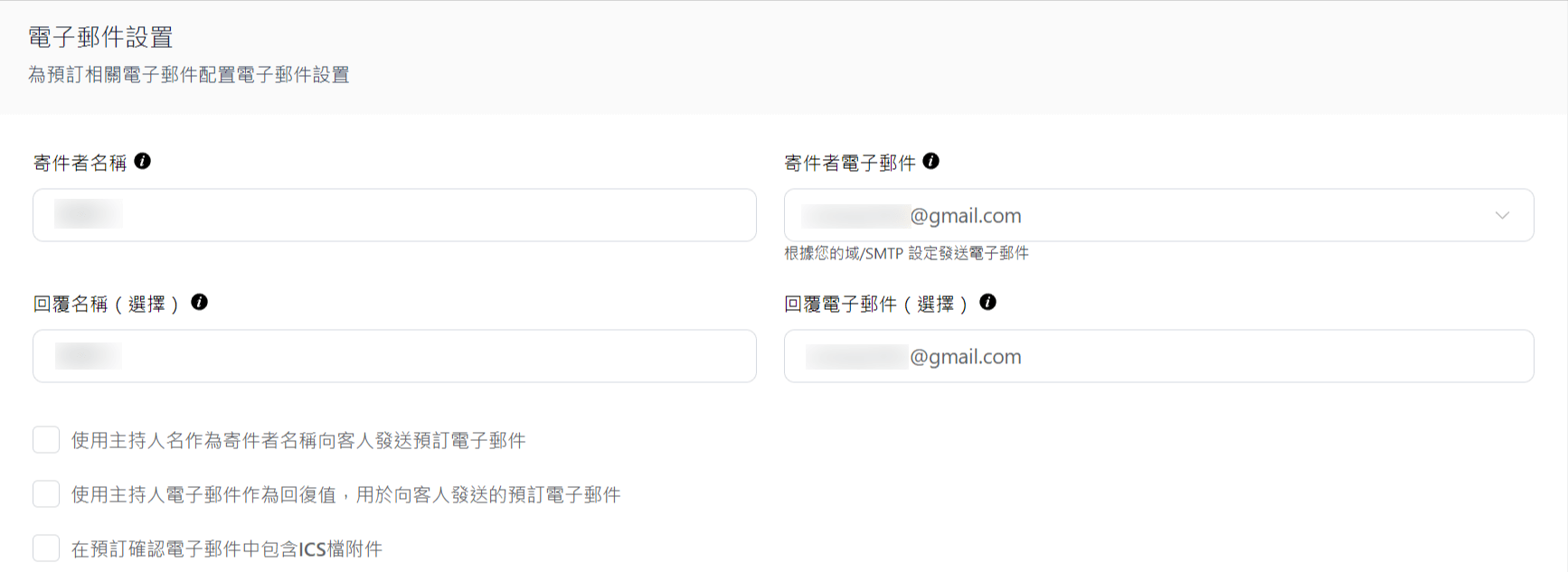 • 使用主持人電子郵件作為向客人發送預訂電子郵件的回覆值:選項將主持人的電子郵件用作向客人發送預訂電子郵件的回覆地址。